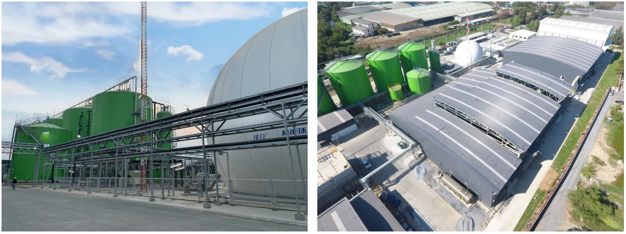 泰國項(xiàng)目是全球最大的采用MYT技術(shù)工藝的固體廢棄物處理項(xiàng)目,并且也是第一個(gè)在東南亞建造的MYT項(xiàng)目。每天可處理生活垃圾800t,可生產(chǎn)沼氣40000m3,產(chǎn)出衍生燃料(RDF)約500t。泰國項(xiàng)目解決了曼谷onnut區(qū)“垃圾圍城”的問題,避免了生活垃圾對(duì)當(dāng)?shù)厣鷳B(tài)環(huán)境造成污染和破壞,同時(shí)最大化實(shí)現(xiàn)了生活垃圾生態(tài)能源化利用。