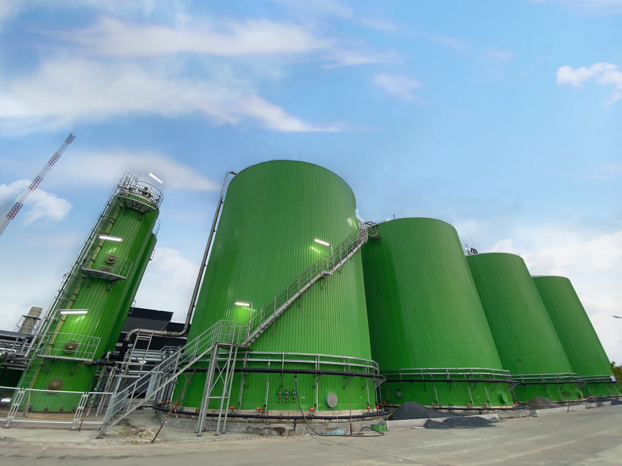 泰國項(xiàng)目設(shè)計(jì)有4套4000m3的高效厭氧反應(yīng)器,2套1000m3/h生物脫硫系統(tǒng)。均由維爾利控股子公司杭州能源環(huán)境工程有限公司設(shè)計(jì)供貨及指導(dǎo)安裝。高效厭氧反應(yīng)器具有高負(fù)荷、低停留時(shí)間、高效率、產(chǎn)氣率高的特點(diǎn),且沼渣量比傳統(tǒng)的CSTR反應(yīng)器更少。生物脫硫技術(shù)具有低運(yùn)行成本優(yōu)勢(shì)。兩項(xiàng)技術(shù)的組合實(shí)現(xiàn)了低成本高效率的有機(jī)物資源化利用。