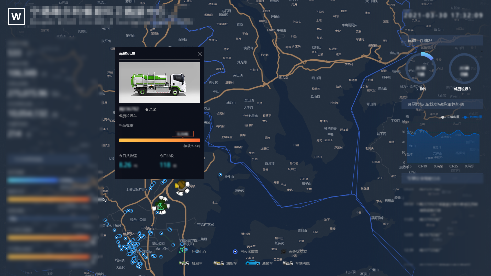 收運及處置GIS一張圖管控,數據大屏實時監控作業進程、廠區情況及事件信息,事件處理效率提升100%;
