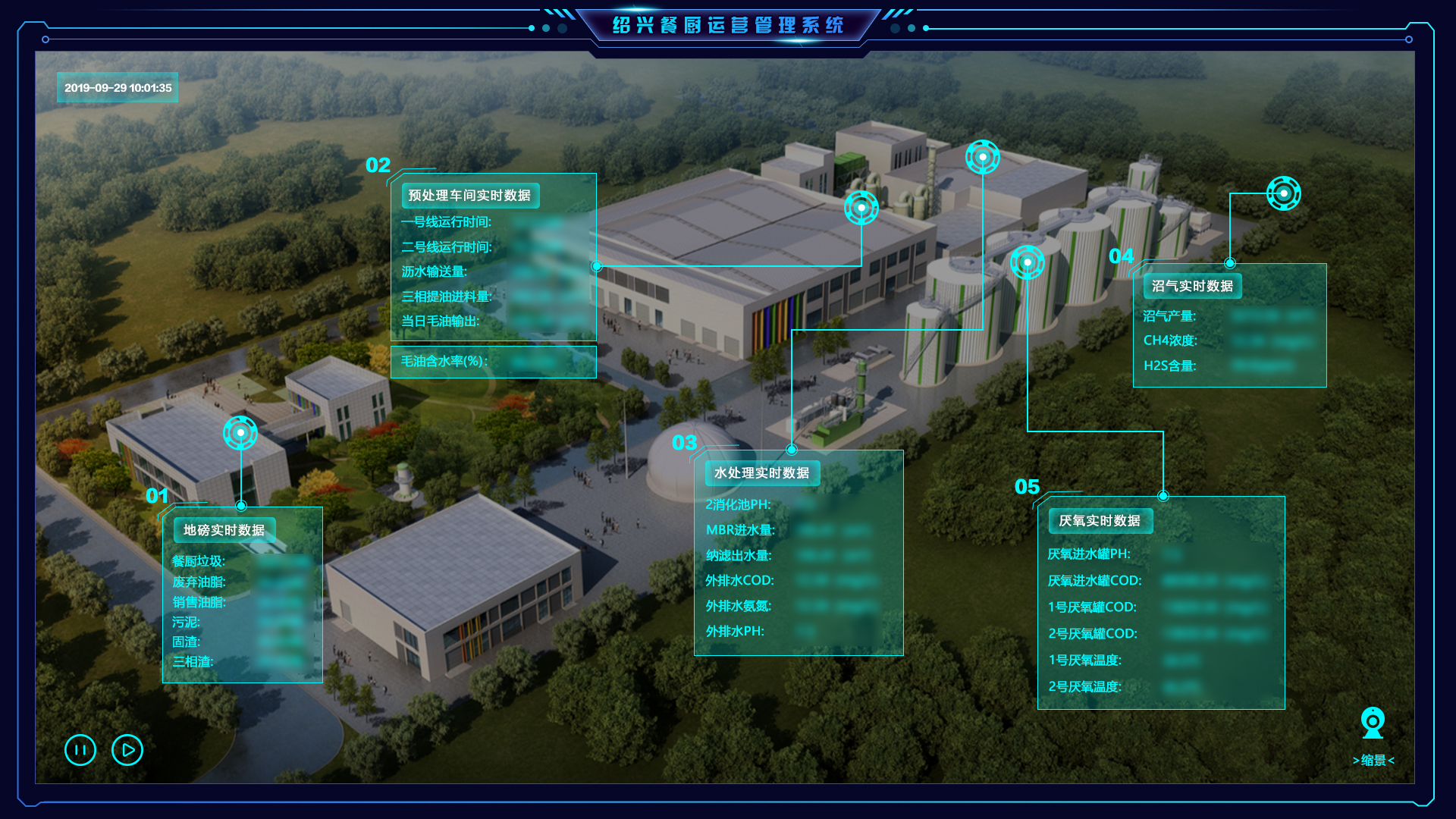 建設數字化的餐廚終端處置廠,通過智慧化生產運營管控體系,整合2D/3D動態擬真工藝中心、遠程工控、數據監測、視頻監管、智能預警、移動巡檢、設備管理、能耗物耗管理等功能,實現處置廠全局態勢感知、智能聯動、智慧決策提高處置和資源化產出效率,減少生產事故,實現降本增效。